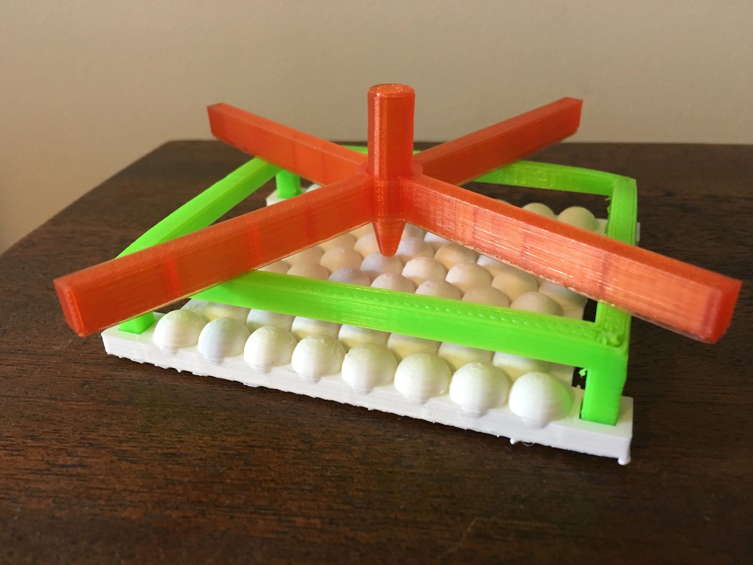 This model demonstrates how an atomic force microscope creates an atomic scale image by “feeling” a surface. The scanning probe moves up and down as you move it across the surface.