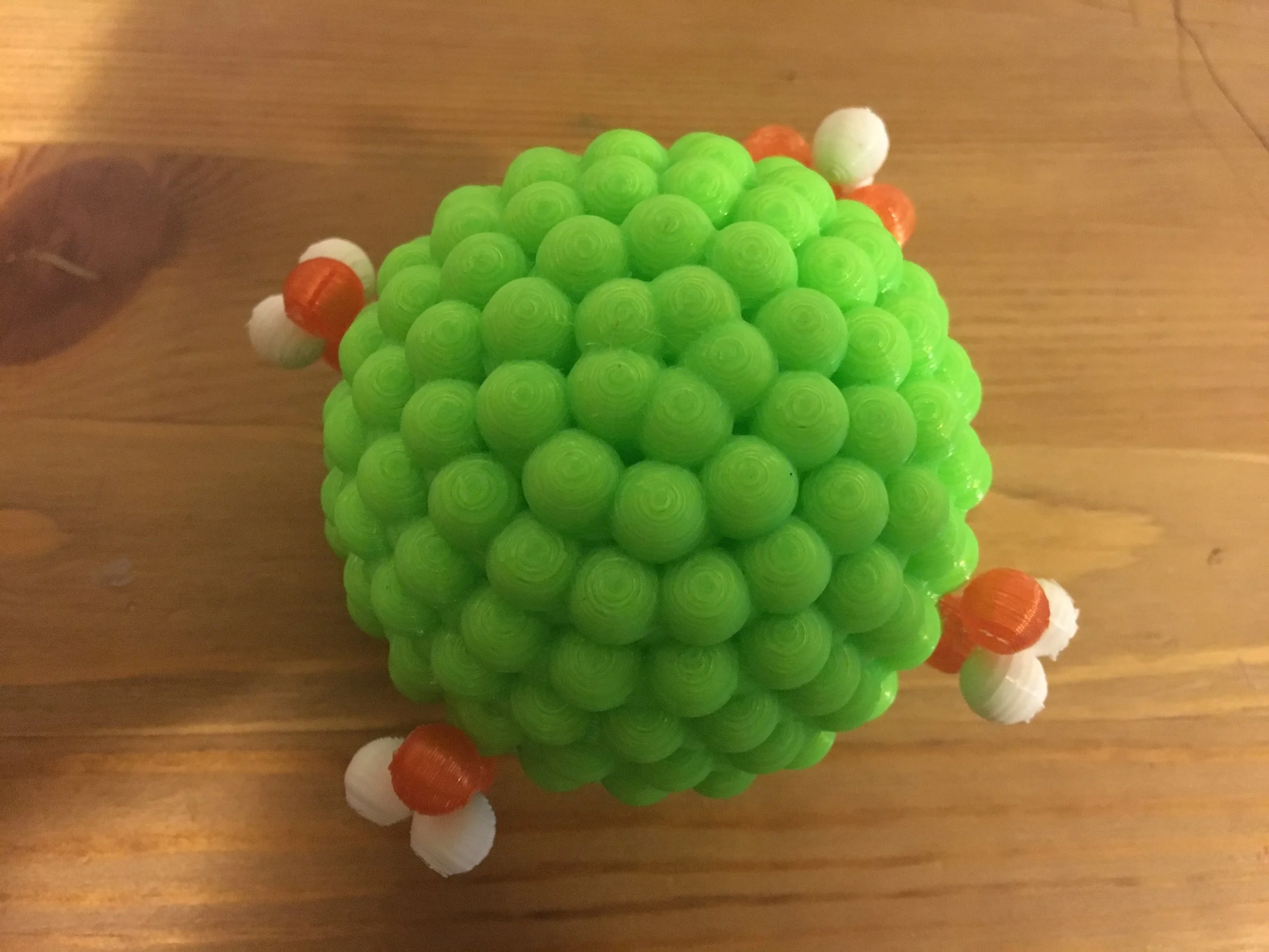 This model shows how an atom loses protons and neutrons in the form of helium nuclei when it undergoes alpha decay.