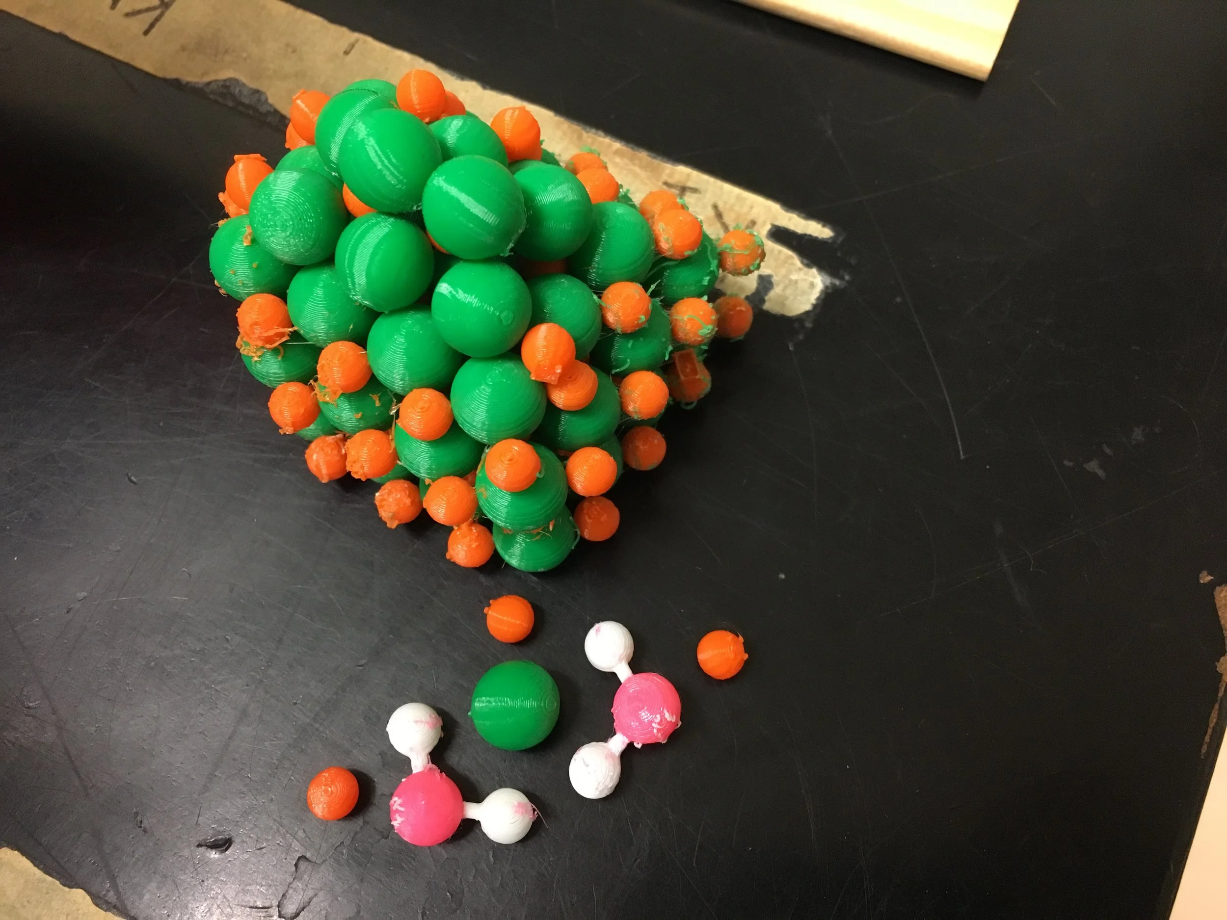 These models demonstrate the chemical differences between ionic compounds and covalent compounds dissolving in water.