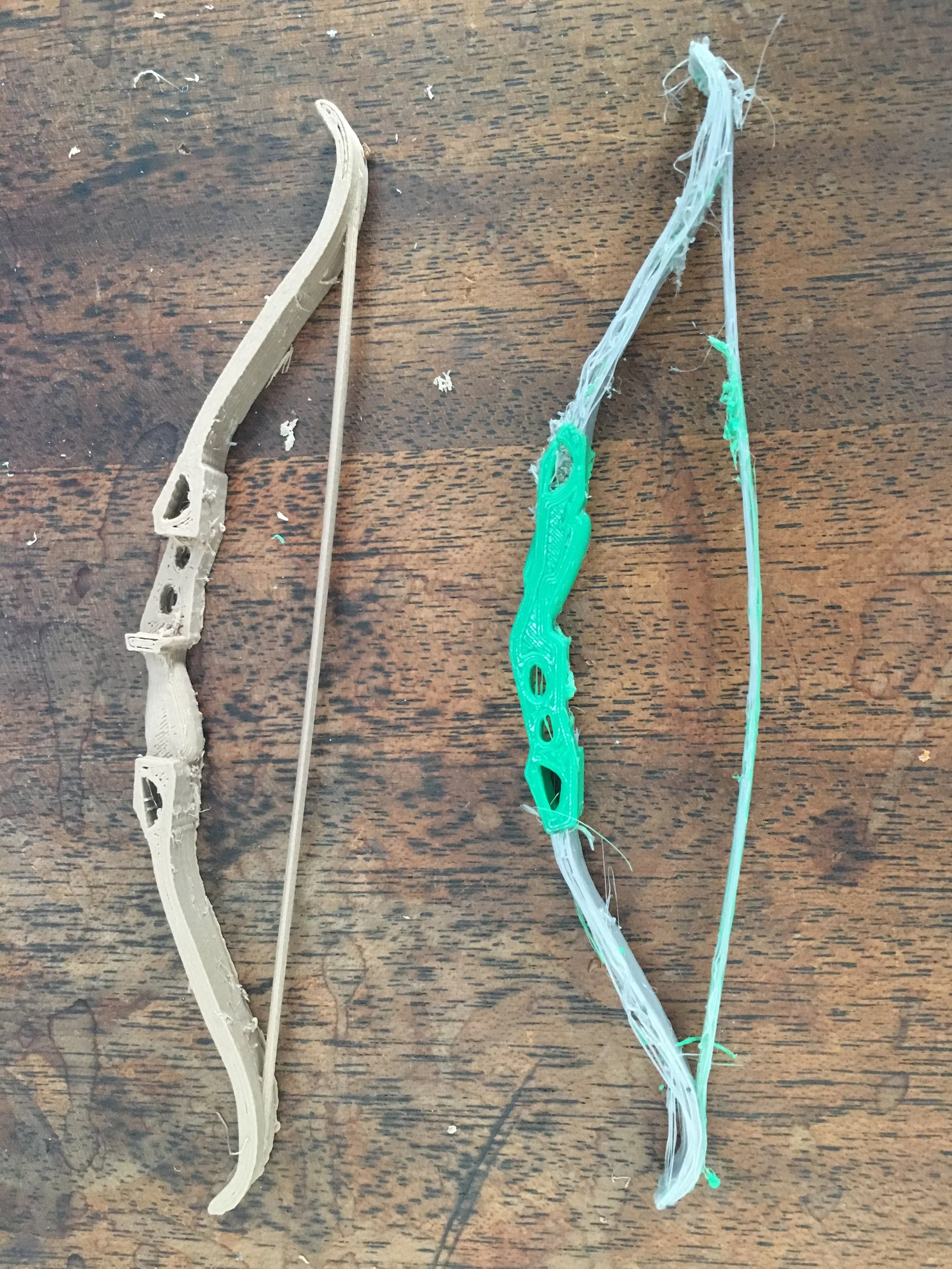 I experimented with mixing different materials, such as flexible filament, to allow the string and limbs to bend.