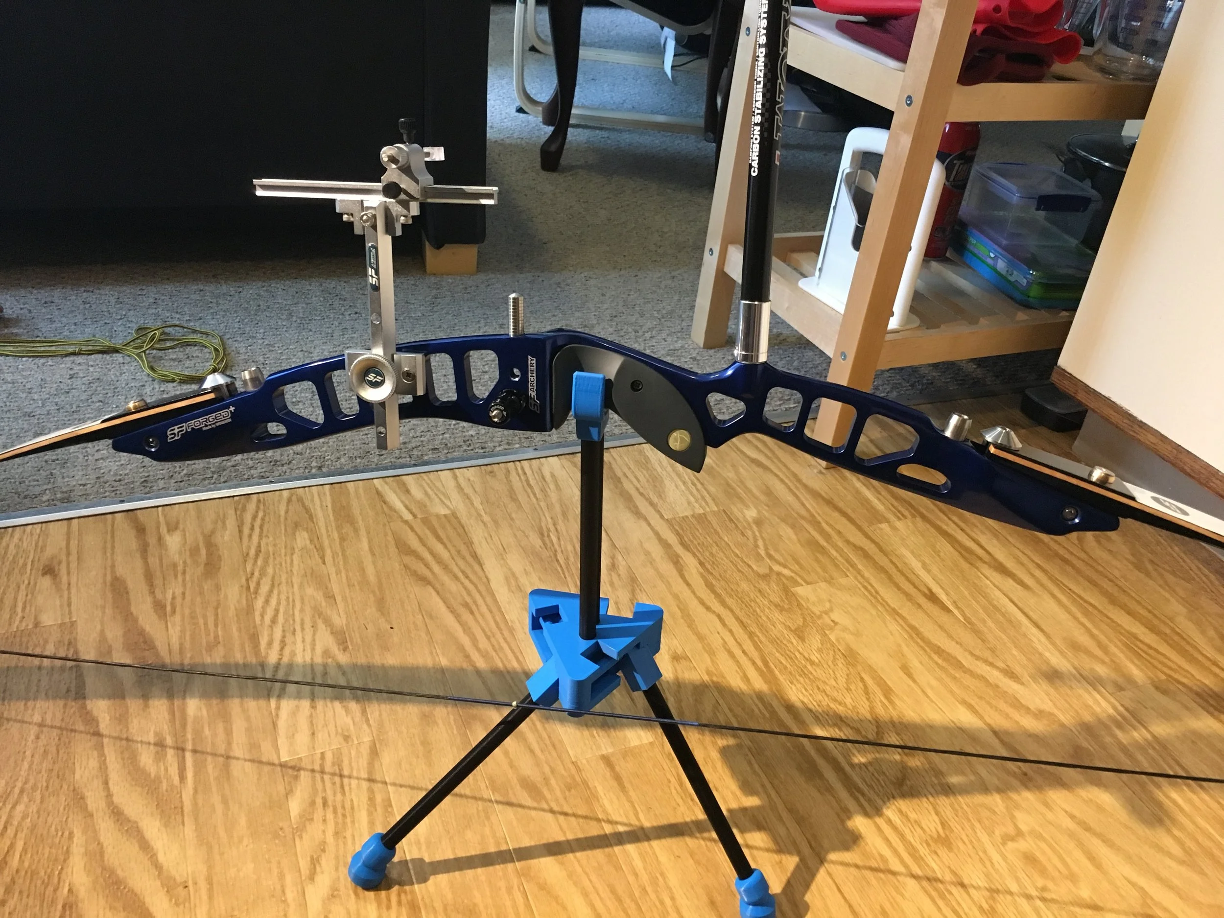 Folding stand to hold my archery bow. It worked surprisingly well on the first iteration.